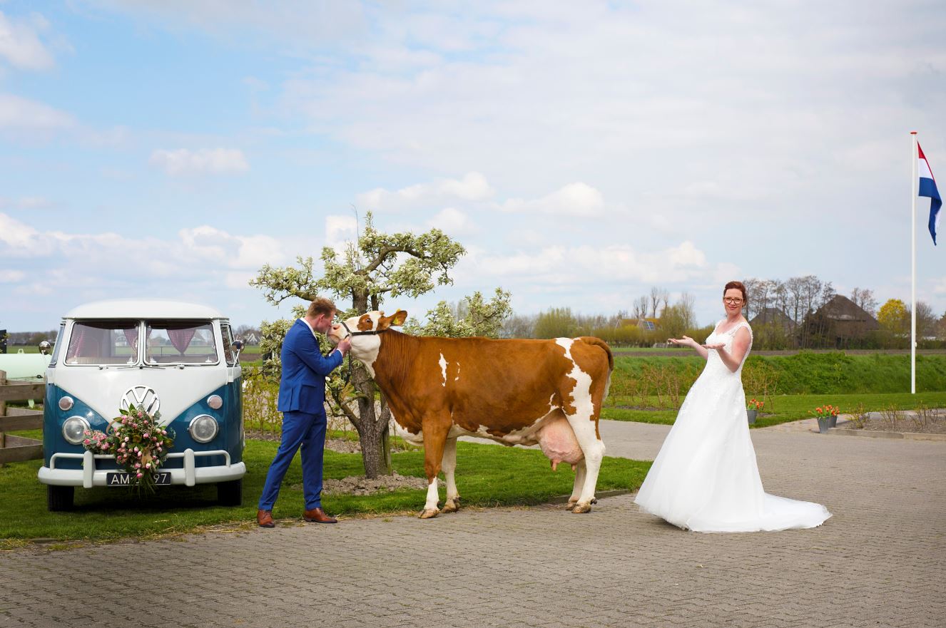 Onder de 33 van Harbers aangekochte koeien bevond zich ook Nellie 181. “In tegenstelling tot veel 100-tonners is dit een koe met een heel gemakkelijk karakter”, vertelt René Staal. “Ik heb nog een beetje met haar geoefend voor de fotosessie tijdens de bruiloft, maar eigenlijk was het helemaal niet nodig. Ze liep als een hondje achter mij aan.”