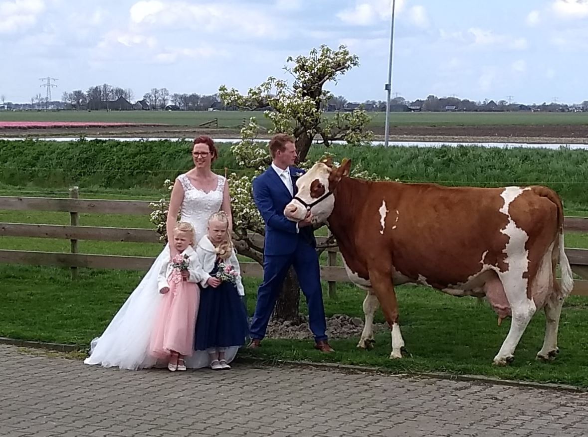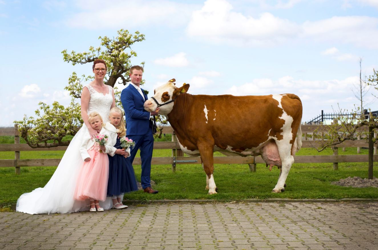 In dezelfde week dat Marinka en René Staal elkaar het ‘ja-woord’ gaven, passeerde Nellie 181 officieel de 100.000 kg melk grens. Dus kreeg deze uiterst gave en makke Fleckviehkoe een prominente plek op de bruidsfoto’s.