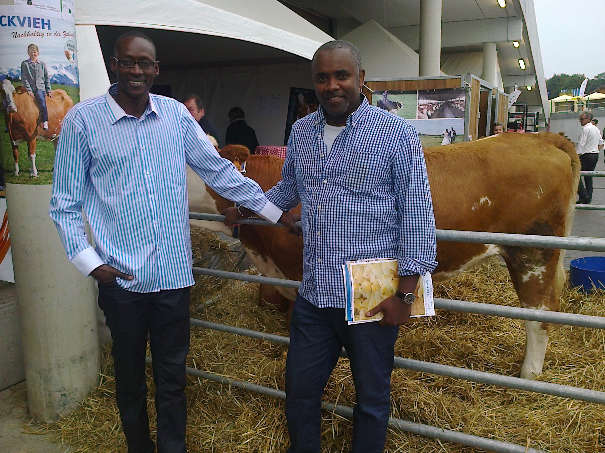 Deze beide heren uit Senegal lieten zich uitgebreid informeren over de mogelijkheden met Fleckvieh onder tropische omstandigheden.