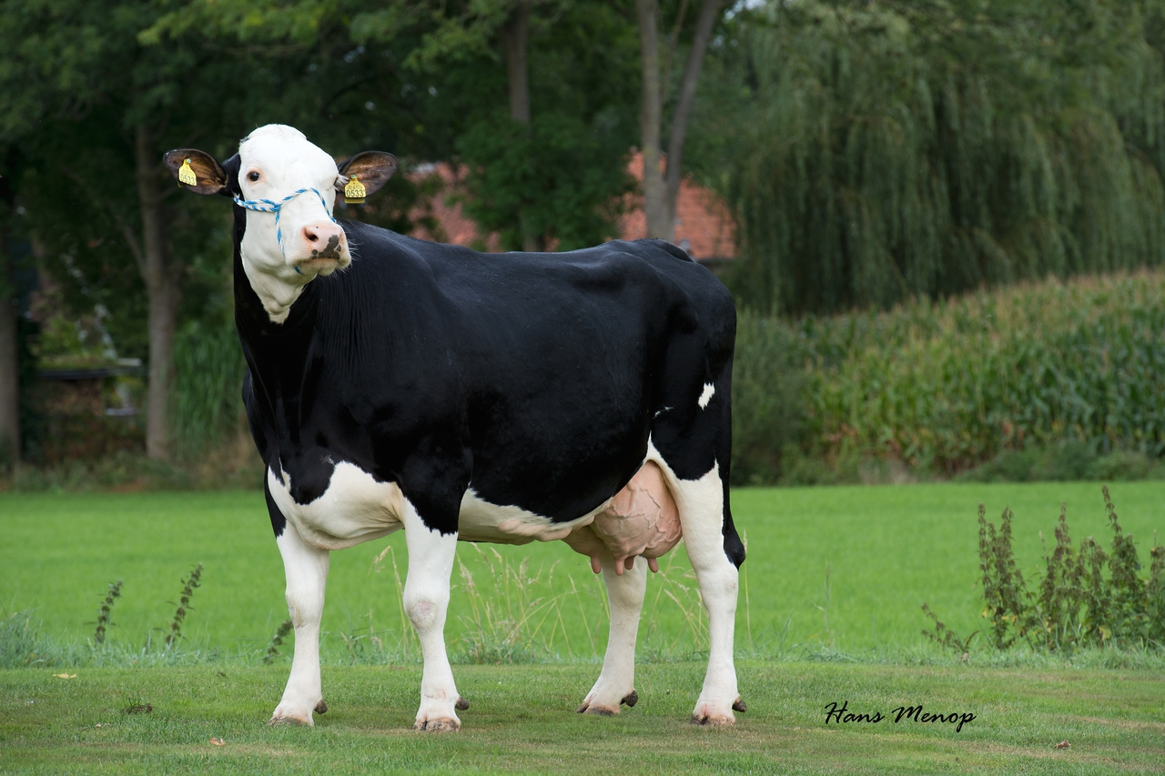 1e lact. 305 dagen: 9683kg melk, 3.55% vet, 3.45% eiwit. LW: 105 (tweeling)