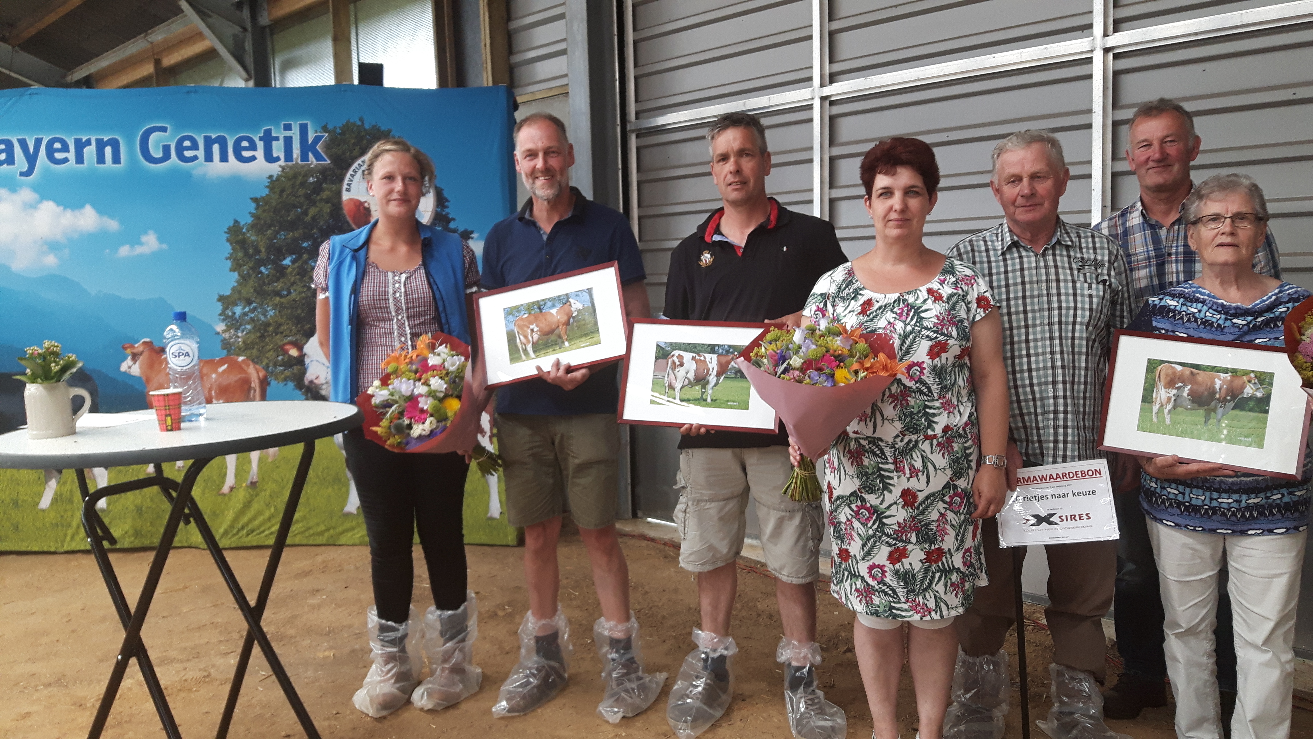 De familie Walvoort was ter plaatse aanwezig in afwachting van de uitslag. "De eerste keer kalfde deze koe in de sneeuw, het is een koe met veel karakter", vertelt Daniëlle Walvoort. “Ze is een koe met een fijn karakter, die altijd als eerste de melkstal inloopt en haar dochter er achteraan, zo wil je er wel een stal vol. Ook hebben we geen veeartskosten en kalft ze vanzelf. Vorig jaar was deze koe vierde bij de Fleckviehkoe verkiezing, maar ze zet maar door, dus hebben we haar weer opgegeven. Dat we zouden winnen is toch een verrassing.” André Walvoort is zichtbaar trots: “Ons fokdoel is om zelfredzame koeien te fokken. We zetten ook in op zuiver Fleckvieh, want we zijn er erg tevreden over. Lage gezondheidskosten, hoge omzet en aanwas, mooie gehalten, duurzame goed renderende koeien. Ze kalft probleemloos af en snel drachtig, zo haalt ze een tussenkalftijd van 359 dagen. Ze oogt ook zeer jeugdig, soms geloven ze niet dat ze al 9e kalfs koe is.” Met recht iets om trots op te zijn. En we wensen de familie Walvoort dan ook alle geluk met Sonja 39.