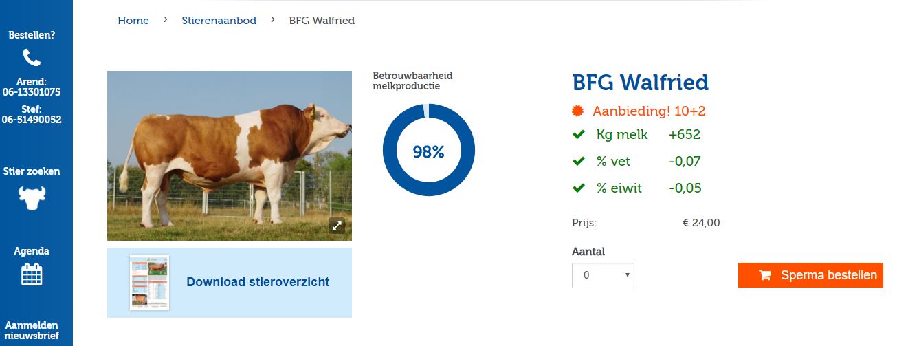 Klik onder de foto van de fokstier op download stieroverzicht