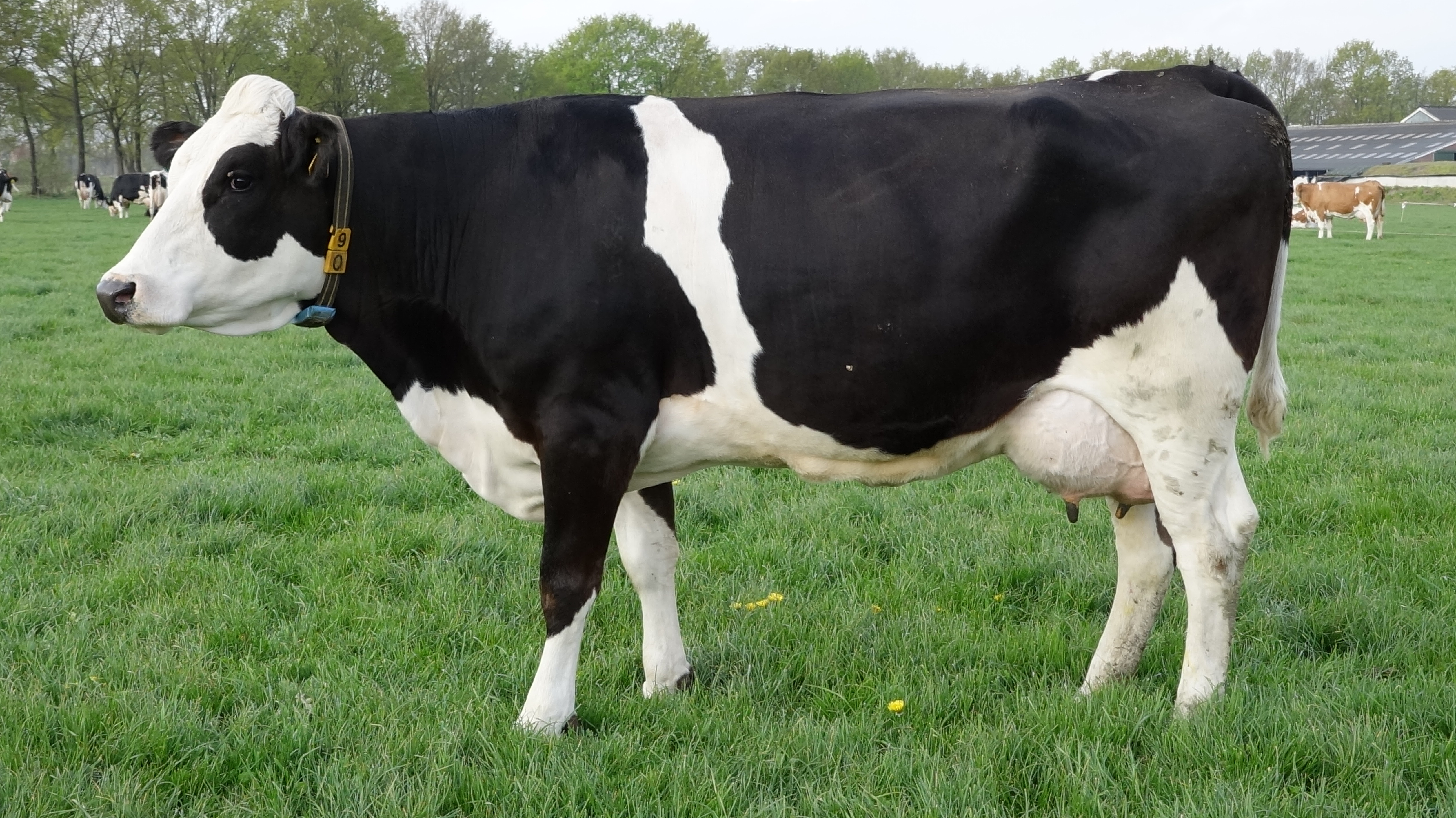 Gewoon een goede functionele koe. Het hoeven niet allemaal modellen te zijn, als ze maar doen wat ze moeten doen. Vader BFG Waldbrand, 2e kalfs na tkt van 382 dagen. Wordt voorspeld op 9454 kg melk met 4.70% vet en 3.56% eiwit.