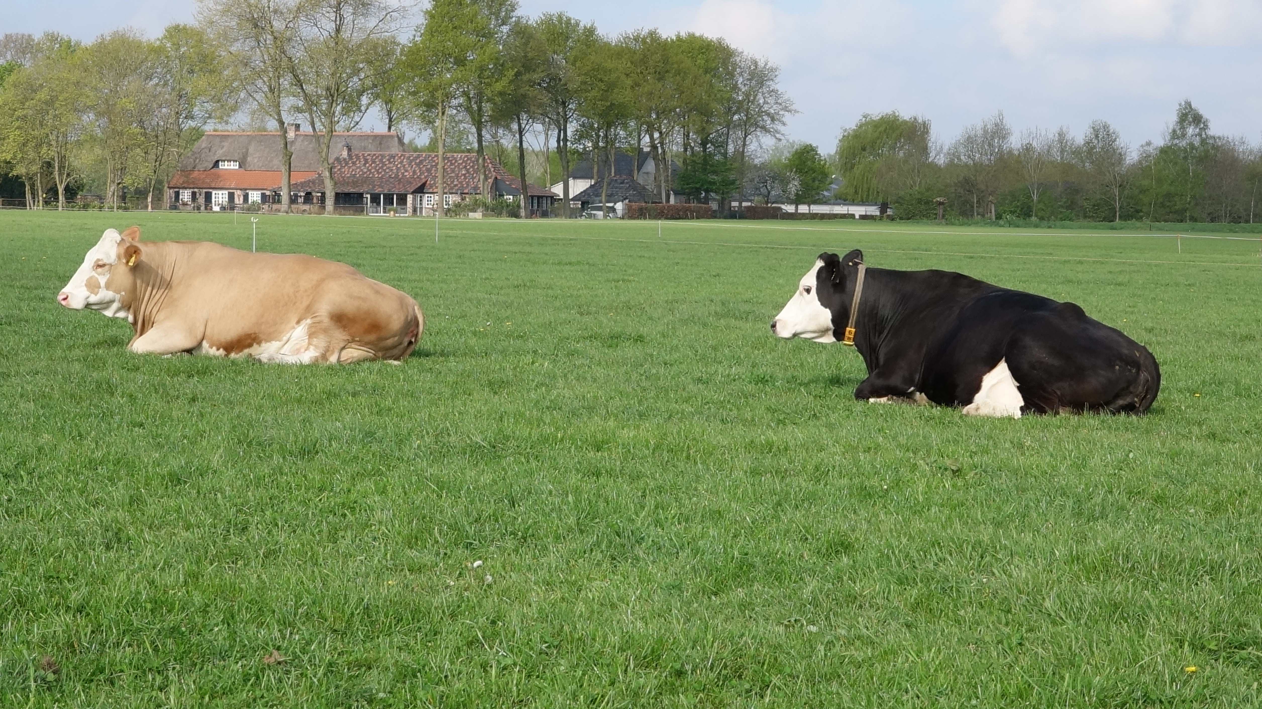 Twee echte dubbeldoelkoeien in een prachtig decor.