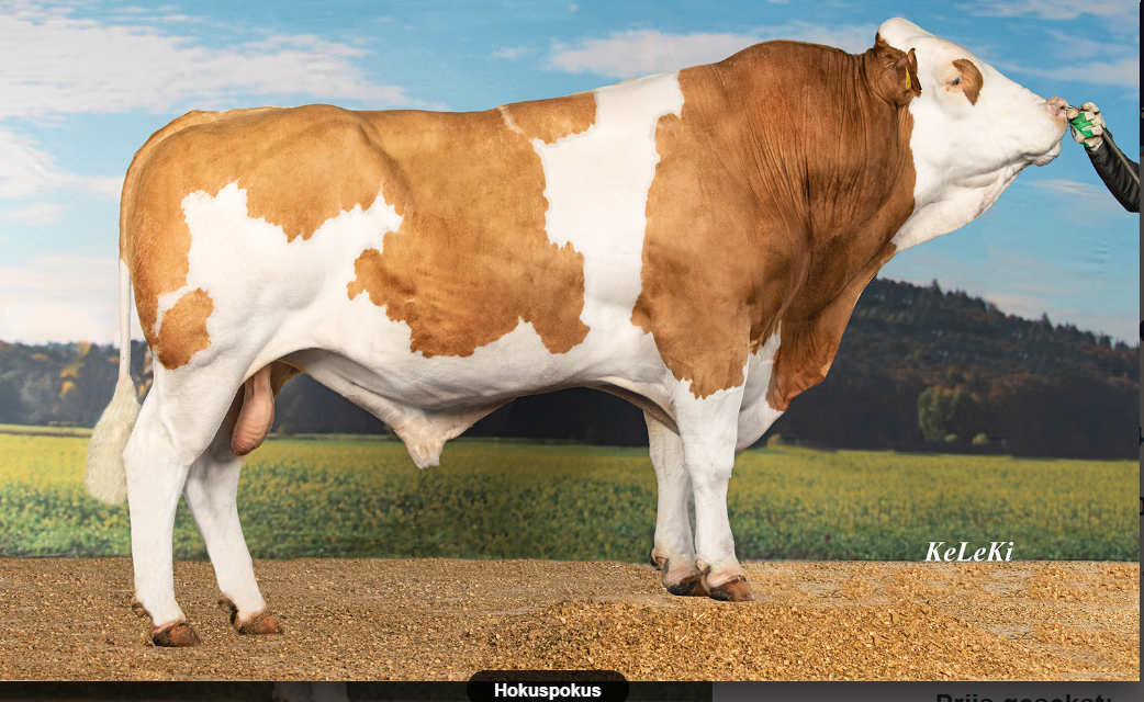 De meest complete Fleckvieh fokstier is zonder twijfel Hokuspokus. Naast een record aantal 1e inseminaties, blijkt de stier ook een top spermaproducent. Zijn bevruchtingscijfers (+2) zijn, ondanks de enorme vraag, alleen maar gestegen. Daarnaast leveren de 619 Hokuspokus dochters stijgende fokwaarden voor dochtervruchtbaarheid (115) en uiergezondheid (113). De melkproductie is uitstekend en de gehalten blijven maar stijgen. Het exterieur en dan met name de uiervererving (126) laat niets te wensen over. En wat tot slot belangrijk is: Hokuspokus kan op Holstein en op Fleckvieh kruislingen ingezet worden. Hokuspokus is een fenomeen!