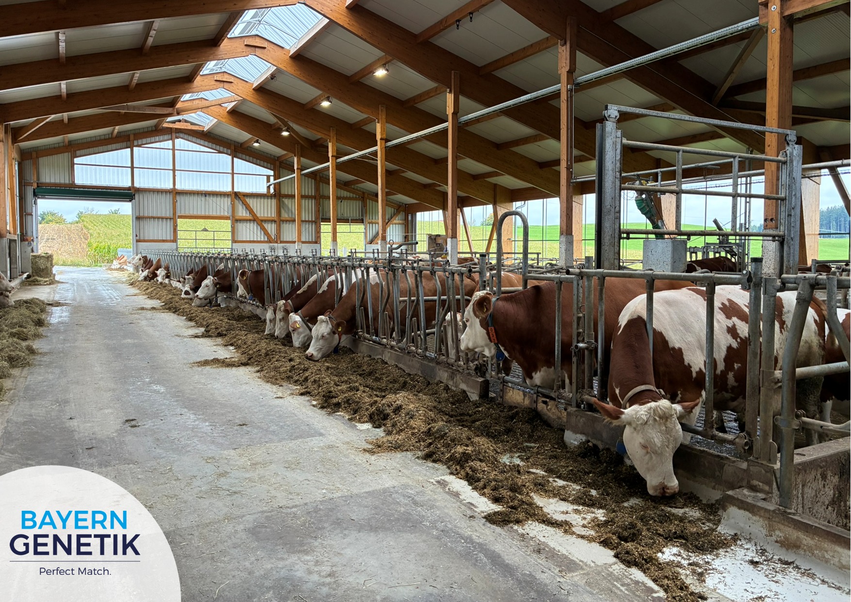 Een moderne stal waar een 100% Fleckvieh veestapel gemiddeld 41 liter per koe per dag geven!