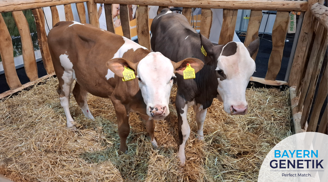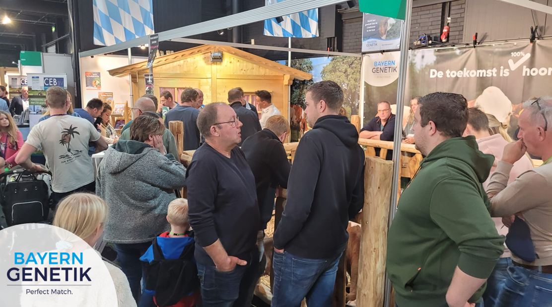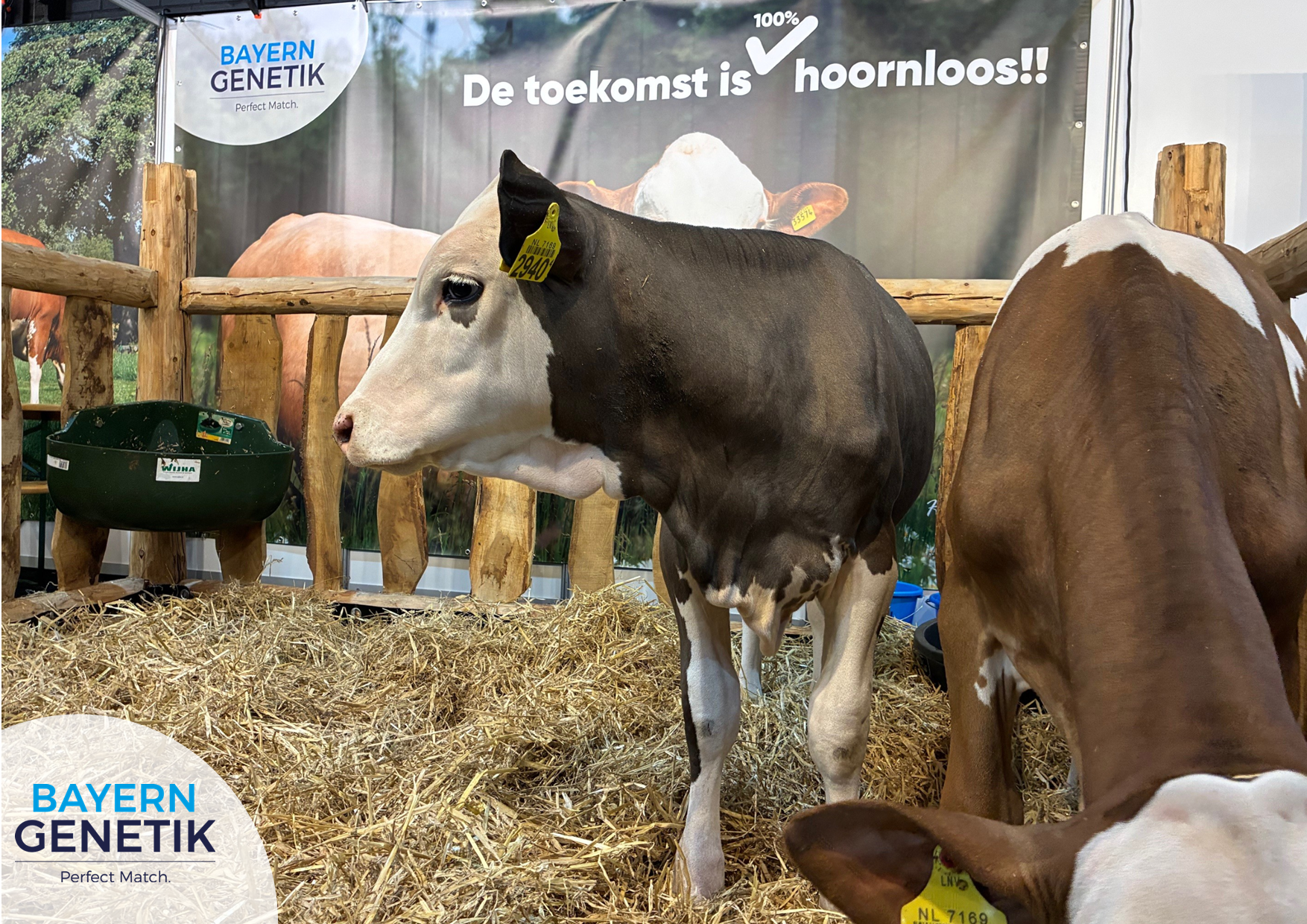 Tijdens de RMV in Hardenberg mochten we vele geïnteresseerde melkveehouders verwelkomen bij onze stand. Onze twee prachtige, hoornloze Fleckvieh-kalveren trokken veel bekijks en lieten mooi zien waar Bayern Genetik voor staat.