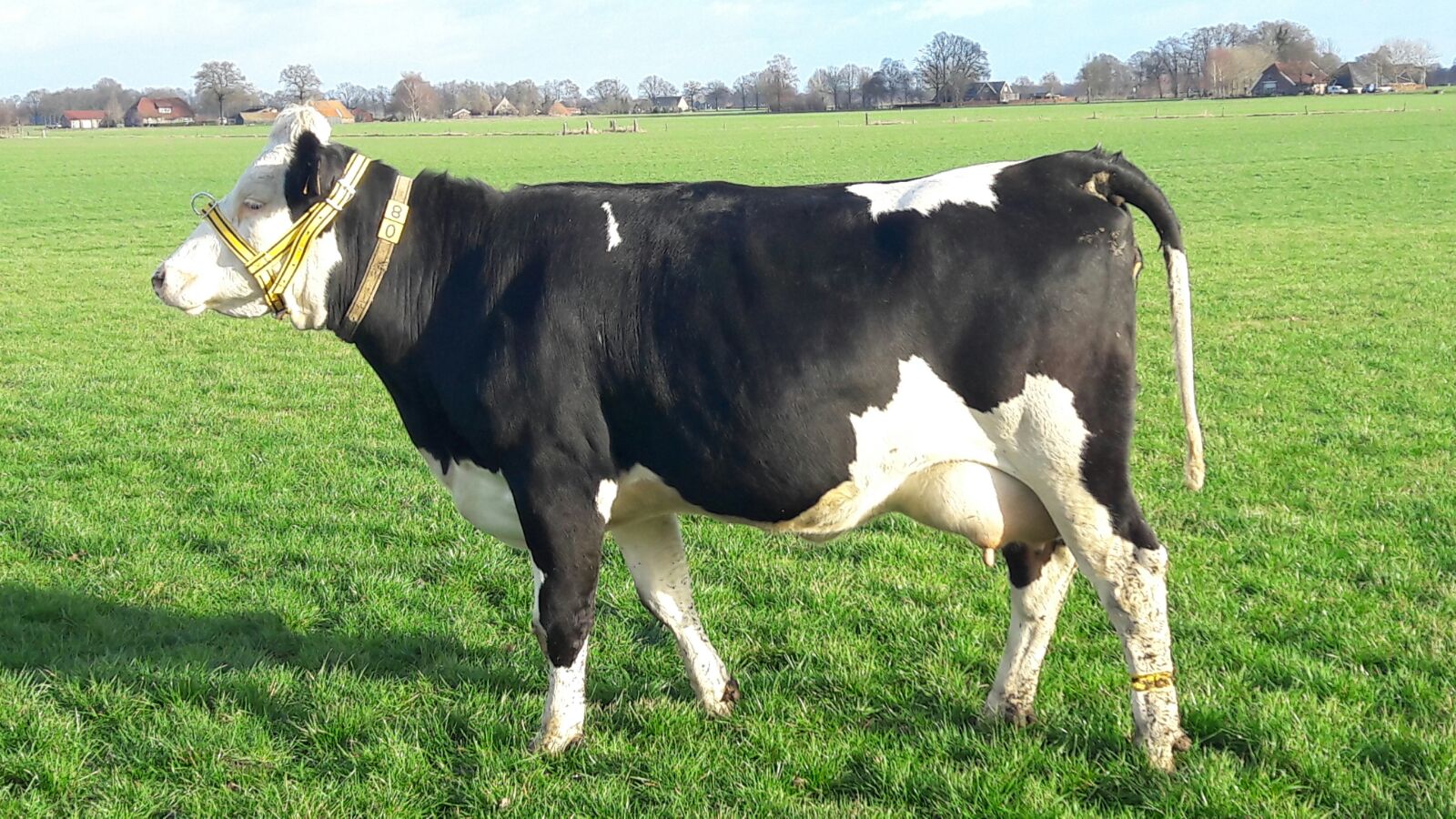 “Hier de foto van onze favoriete Fleckviehvaars. Helaas is er geen koekaart bij want ze is 2 weken aan de melk en dus is er nog geen officiële melkproductie geregistreerd.