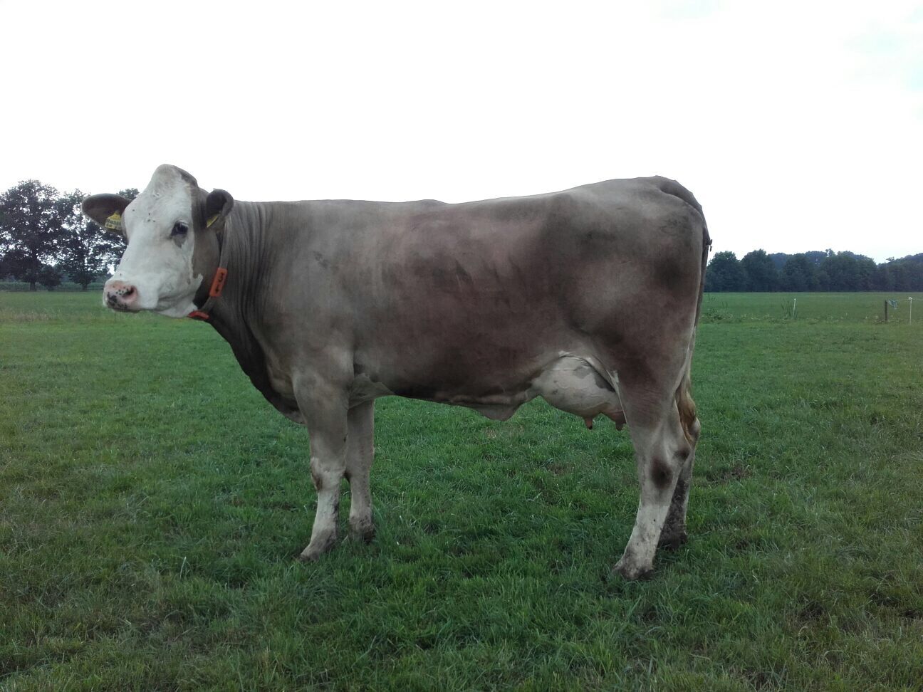 “Nummer 34 is een Rusticodochter die is begonnen met 41 liter daags. Nu, na 130 dagen, geeft ze nog 31 liter. Ze kan het makkelijk aan want ze heeft een goede conditie. Laatst had ze een barstje in de klauw, maar dat is nu weer hersteld. Ze heeft een fijn karakter, het uier melkt prima weg en ze is altijd als een van de eersten in de melkstal. Ze is lekker brutaal en denkt goed aan zichzelf en aan ons. Van zulke koeien heb je er nooit teveel. Haar 305 dagen productie wordt voorspeld op 9700kg melk, ze heeft een celgetal van 21 en een lactatiewaarde van 120”, aldus Niek Dwars.